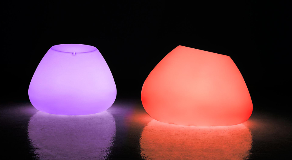 Verlichte buitenkruk in wit polyethyleen.